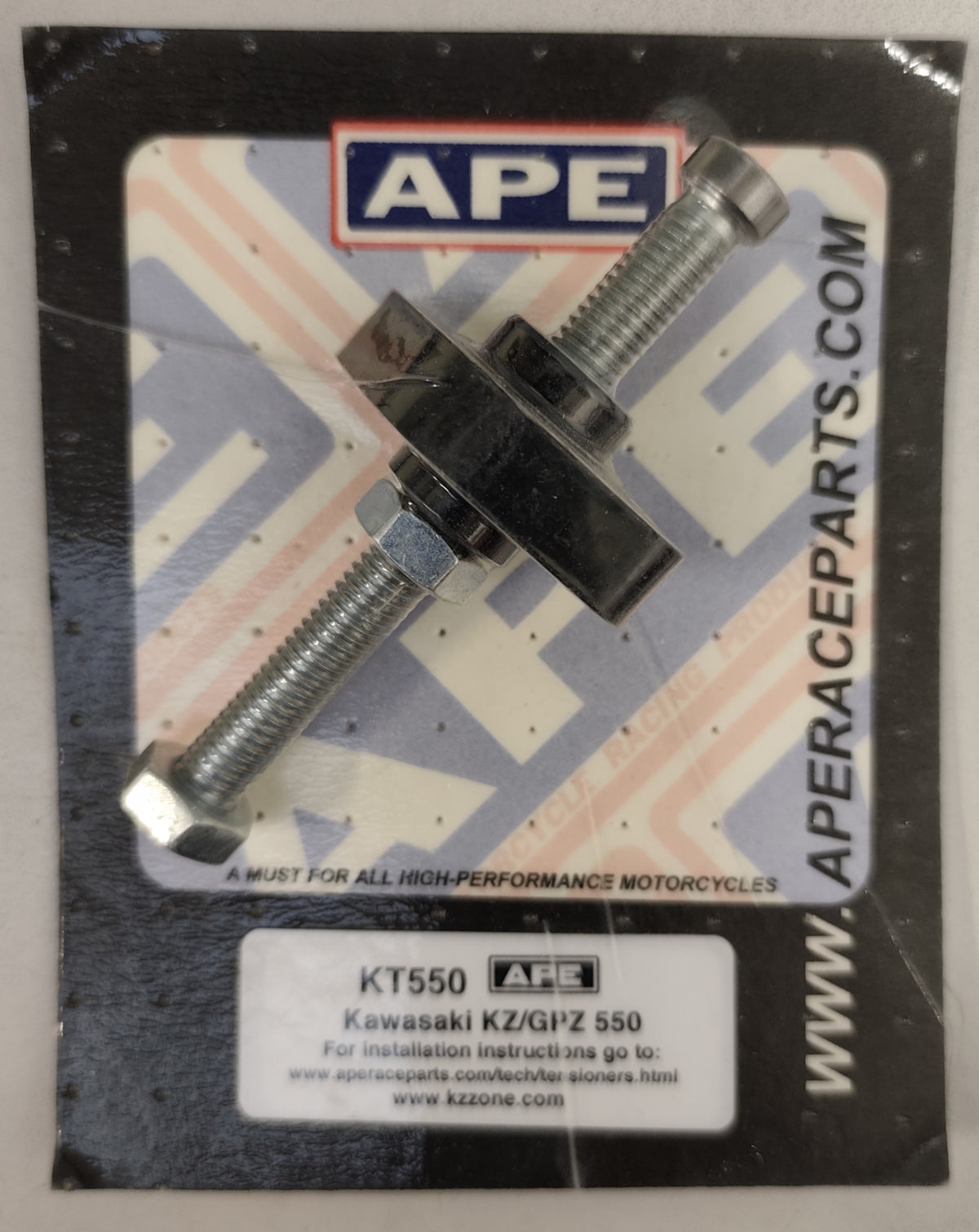USA made, genuine APE manual camchain tensioner. The APE range of tensioners cannot back off like the OEM type automatic tensioners and are a must for any hard ridden standard or tuned machine. Beware of cheap copies! Easy to install. These tensioners often take up more slack than a standard tensioner, so can sometimes also stop chain noise.
