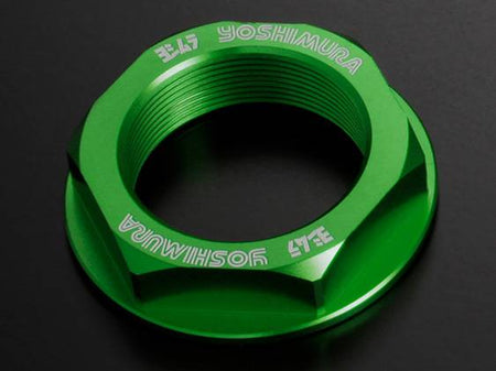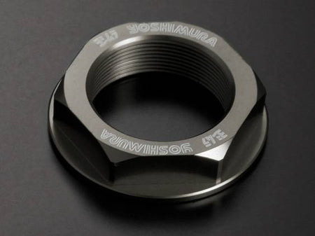 CNC machined from high quality aluminium to be as strong yet lighter than the stock steel unit. Featuring a laser etched Yoshimura logo to give your cockpit a factory racebike look. Available in a range of anodised colours to colour code to your bike and suit any riders taste. Dimensions: Nut diameter M28, Pitch 1mm, height 10mm, hex size 36mm.