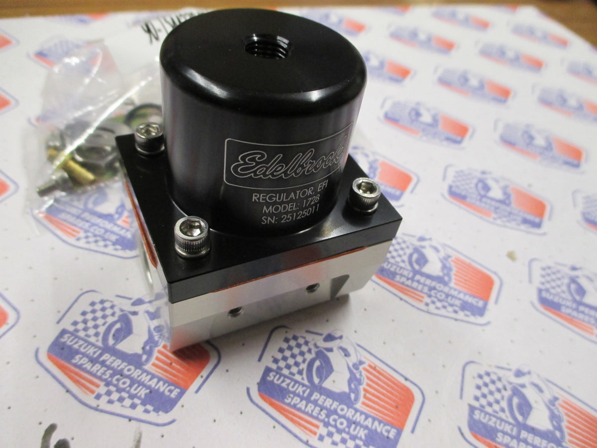 The Edelbrock 1728 fuel pressure regulator is machined from high quality aluminum. They are compatible with all grades of gasoline, ethanol, methanol and E85 fuels. Features a black and clear finish with -6 inlet, outlet and return ports.