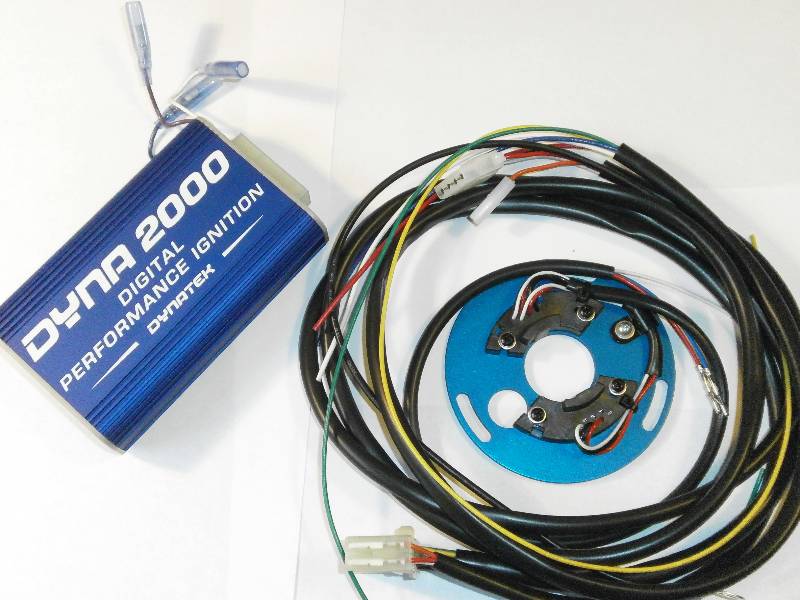 The Dyna 2000 ignition is a complete ignition package of pickups and control box. it features a built in dial adjustable rev limter and a dial adjustable advance curve. it features 2 tacho out puts for use on accessories such as shift lights.in addition to this it can be almost infinitely Programmed on a pc.it replaces the oem pickups and cdi completely.