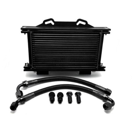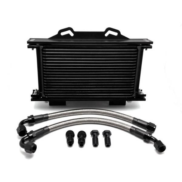 They include new CNC aluminium brackets to ease fitment and new oil lines which are available with either stainless steel braided hoses or our black braided hoses for that stealth look. Fittings are black anodised and the kits include any adapters, take offs or bolts required to give a complete replacement to the OEM oil cooler.