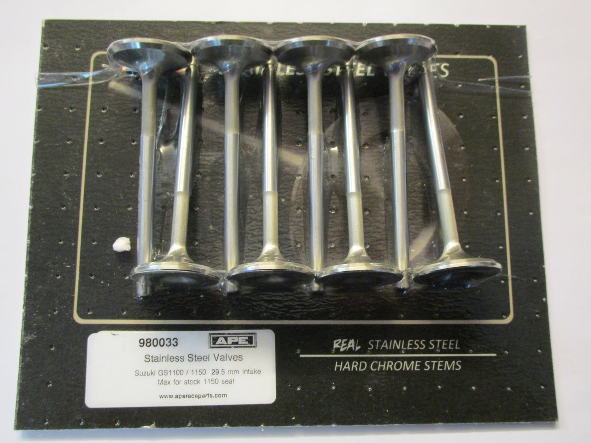 APE Stainless one piece race valves for the GSX1100 air cooled. . 29.5mm , oversize seats needed
