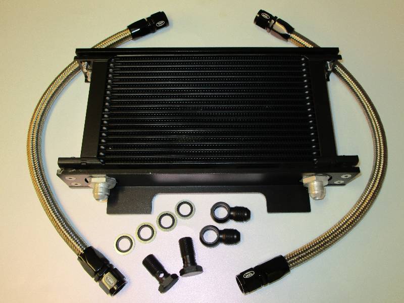 They include new CNC aluminium brackets to ease fitment and new oil lines which are available with either stainless steel braided hoses or our black braided hoses for that stealth look. Fittings are black anodised and the kits include any adapters, take offs or bolts required to give a complete replacement to the OEM oil cooler.