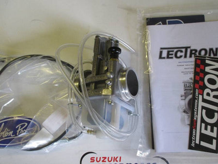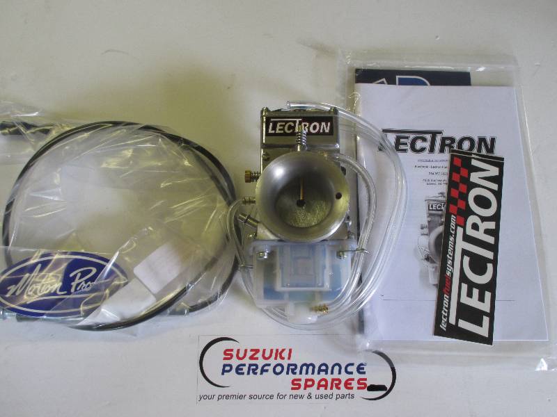 Custom assembled 40mm powerjet Lectron carburettor For the early Kawasaki KX500 MX. The carb features all the required Lectron Off Road Modifications, 'shorty' body and billet float bowl support.It is also supplied with a Custom Pro throttle cable as the original will not allow complete lift of the slide. The kit also includes the Lectron Billet adjuster tool. Simply the best carb for power and response available.... Lead time is 7 days from order usually. Please Give full details of any mods to your bike when ordering. The kit includes a throttle cable. The adjustment tool is highly recommended in case you have to do any tuning. Using pliers to make adjustments can scratch the metering rod and alter the fuel delivery characteristics. *Lectrons Provide superior throttle response and power delivery by utilising our patented metering rod. *Our simple design does not incorporate multiple jets to replace. *Our taper bore squeezes the air to increase speed and create fuel lift behind our flat metering rod. *Lectrons are a great choice for riders seeKing performance, fuel economy, simplicity and smother power delivery.