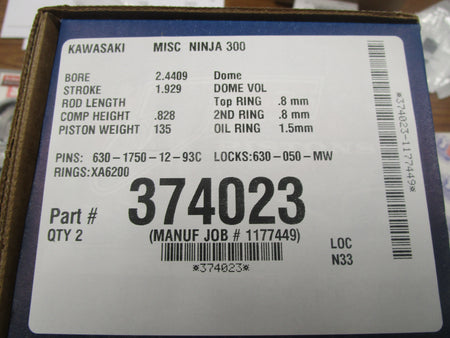 JE Forged Race Piston Kit. Kawasaki Ninja 300 Twin This kit is supplied with pistons/pins/rings and circlips. 3 Ring Type