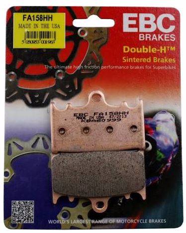 EBC Brakes Double-H Sintered Brake Pads To Fit Front Kawasaki ZX-9R 94-95 Fast street and superbike pad Ultra high brake effect and lifetime Perfect braking wet or dryThe EBC flagship sintered streetsport pad that delivers highest braking power, stability and long life. There are few pads on the market to meet or beat the performance of Double-H pads. Made in the EBC state-of-the-art sintering plant in Ohio, USA, these pads stop fast - wet or dry - and last for thousands of miles.Note: Price per pair FA158HH