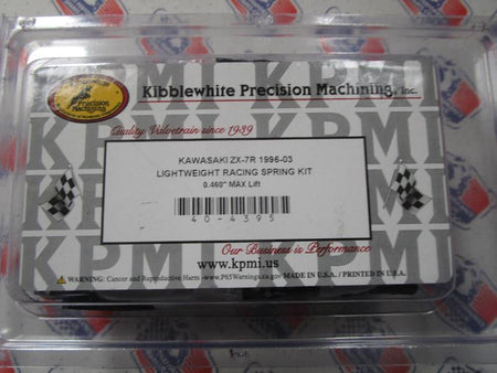 Since 1939, KPMI® has taken great pride in our ability to design innovative performance improvements for valvetrains. This innovative ability has never been more apparent than with the development of the high tech lightweight racing valve Spring kits for the incredibly stressed and torturous environment in today's high revving 4-stroke engines. The challenge to engineer a valvetrain that would outperform OEM systems, that in some cases included titanium components, was not an easy one. This task would require the concentrated efforts of every member of KPMI®'s design team. It was apparent early on that an OEM style Spring with a bit more pressure was not going to be the complete answer for these engines. WorKing together as a team enabled KPMI® to evolve with a "unified system" apProach. In fact, these innovative high performance lightweight valve Spring kits, would not only outperform factory parts, but outlive them as well. Each KPMI® Spring kit is designed for its specific application, taKing into account several critical parameters including; cam Profiles, harmonics, natural frequency of the Springs, valvetrain mass, required pressure, wire stress, fatigue life, and engine rpm, just to name a few!Today KPMI® Proudly offers complete high performance lightweight valve Spring kits for a host of applications. This 60-1005 GSXR750 96-99 Liteweight Spring and Titanium Retainer kit, consists of Dual type Springs, Titanoin Retainers , Spring bases ' it can be used with titanium or stainless valves.