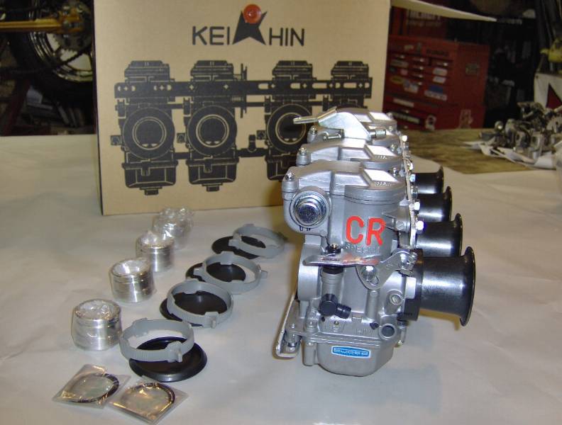 New Keihin CR carbs.Round slide smoothbore for tuned road and race machines.
