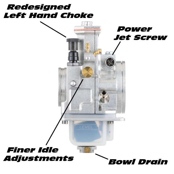 - Choke redesigned and moved to the left side for easier and more consistent usage Larger and more accessible idle screw with finer threads for more accurate tuning