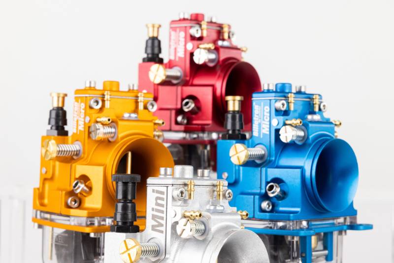 Machined billet aluminium construction reduces weight and increases strength Reuses the stock throttle and cable Redesigned bell and bore for increased bottom end performance Shorter overall length (~78mm) and height allow for a better fit