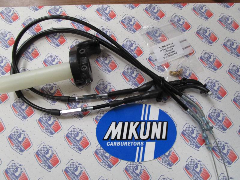 Mikuni 40mm TDMR Kit for the M900 900SS Ducati.Mikuni TMDR flatslide racing carbutor kit for Ducati. New. Genuine Mikuni, high quality parts. The advantages of the flatslides over the stock carburetors are well-know: much better throttle response and more power over the entire rpm range. This is a plug-and-play kit: directly fits without airbox modifications. A cable nipple is included to shorten the choke-cable. Details: Mikuni TDMR40 flatslide downdraft racing dual carburetor kit with choke with fully adjustable accelerator pump (start, stop and squirt duration) directly fits the cylinder head intake manifolds and airbox, without modifications required includes throttle and throttle cables choke-cable needs to be shortened (nipple included) installation instructions are included extra main jets are included for 'unrestricted intake' (for removed airbox lid or use of K&N filters)