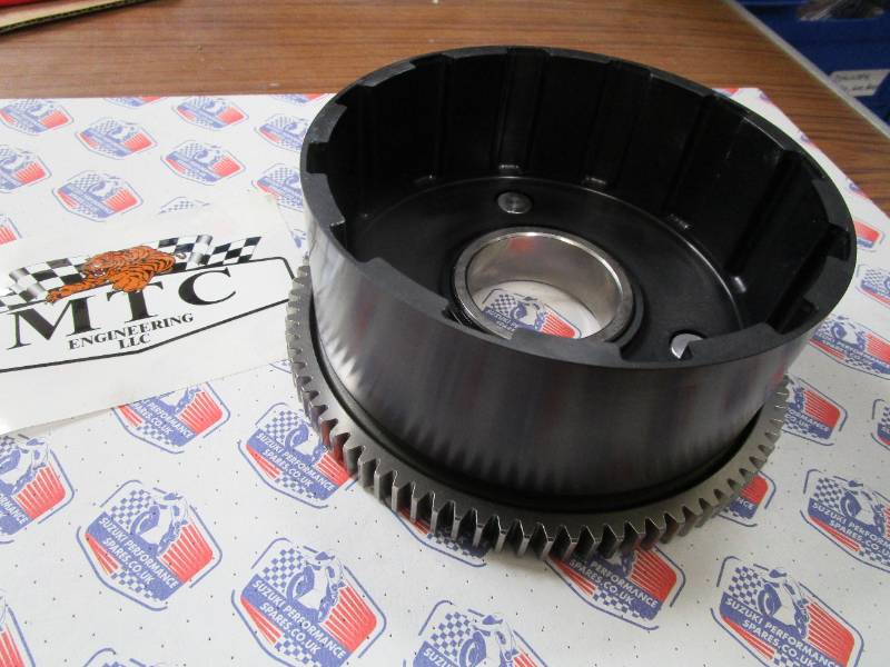 MTC Billet Clutch basket. Made in the MTC Florida USA Facility, fitted with Chrome Moly Billet back plate,heavy duty rivets and Springs and a Standard Ratio Straight cut Primary gear.This package is an ideal base for a top line road race endurance type GSX1100 motor or Nostalgia Prostock.