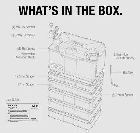 NOCO powersports lithium battery NLP14 NOCO powersports lithium battery. Better than lead-acid powersport batteries in almost every way - no sulfation, no activation, no acid, no maintenance, and no water needed. Designed to withstand 50,000 start cycles and 2,000 charge cycles. Better than lead-acid powersport batteries in almost every way - no sulfation, no activation, no acid, no maintenance, and no The most highly-designed and engineered lithium powersport battery series ever. Dynamic BMS - An advanced battery management system that Provides maximum safety Protection with bi-directional active cell balancing for long-lasting reliability. Plus, no BMS reset is needed. Superfast Charging - Unleash the power of lithium and quickly recharge within minutes. Utilizing the most advanced rapid-charge technology, it Provides enough starting power with just 5-minutes of charge. Universal - A multi-terminal configuration that allows front, side, top, and female installations. Plus , modular trays fit various group sizes and a removable mounting block to accommodate legacy battery applications. Replaces battery sizes : BTZ10S, BT12A-BS, BTZ12S, BTX12-BS, BTZ14S, BTX14, BTX14-BS, BT14B-4, BTX16-BS, BTX16-BS-1, B16A-AB, BTX20CH-BS, ETX12, ETX14, ETX14L, GYZ16H, HYB16A-AB, YTZ10S, YTX12, YTZ12S, YT12A-BS, YTX12-BS, YTX14, YTX14-BS, YTX14H, YTZ14S, YTX14H-BS, YTX16-BS, YTX16-BS-1, YTX20CH, YTX20CH-BS, and KMX14-BS. YTZ10S, YT12A-BS, YTZ12S, YTX12-BS, YTZ14S, YTX14, YTX14-BS, YT14B-4, YTX16-BS, YTX16-BS-1, B16A-AB, YTX20CH-BS, YTX12, YTX14, YTX14L, GYZ16H, HYB16A-AB, YTZ10S, YTX12, YTZ12S, YT12A-BS, YTX12-BS, YTX14, YTX14-BS, YTX14H, YTZ14S, YTX14H-BS, YTX16-BS, YTX16-BS-1, YTX20CH, YTX20CH-BS, and KMX14-BS. Dimensions: Length: 149mm Width: 87mm Height: 200.5mm CCA: 500 Polarity: +/- Type: Lithium Voltage: 12V