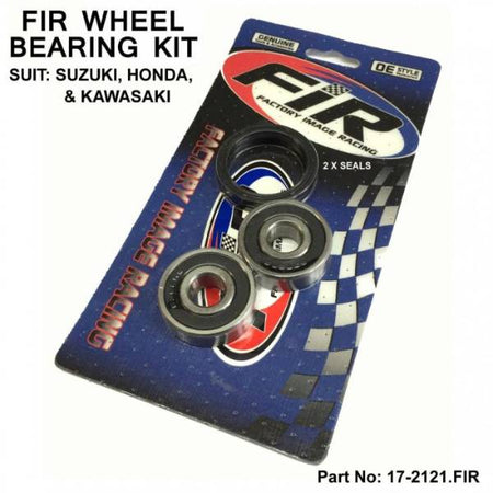 Front Wheel Bearing & Seal Kit FIR - High-Speed Bearings are manufactured to precision levels. - Rubber seals keep the grease in and the water and dirt out. - Chevron SRI 2 grease contains rust and oxidation inhibitors (-29 C to 177 C). - Double lip type TC seals with stainless steel garter Springs. Suzuki GN400 80-82, GR650 Tempter 83, GS1000 78-79, GS1000E 78-80, GS1000G 80-81, GS1000GL 80-81, GS1000L 79, GS1000S 79-82, GS1100 82-84, GS1100E 80-83, GS1100ES 83, GS1100L 80, GS1100S 83, GS1150 83-86, GS250 80-81, GS300L 82-83, GS400 77-78, GS425 79, GS450 80-88, GS500 89-02, GS500F 04-09, GS500H 07-09, GS550 77-86, GS550E 79, GS650E 81-82, GS650G 81-83, GS650GL 81-83, GS650M 83, GS700 85, GS750 77-82, GS750E 78-83, GS750ES 83, GS750L 79-81, GS750S 83, GS750T 83, GS850G 79-83, GSF400 Bandit 91-93, GSX600F Katana 88-02, GSX750F Katana 89-02, GSXR1100 86, GSXR750 86, GT250 Hustler 73-77, GT380 Sebring 73-77, GT500 Titan 76-77, GT550 Indy 73-75, GT750 Lemans 73-77, GV1200 Madura 85-86, GV1400 Cavalcade 86-88, GV700 Madura 85, GZ250 99-10, LS650 Savage 86-16, RE5 ROTARY 75-76, RV 125 Van Van (Euro) 03-10, TU250 09-16, VS1400GL 87-94, VS1400GLP 95-04, VS1400GLP S83 05-09, VS600 INTRUDER (Euro) 95-97, VS700 Intruder 86-87, VS750GLP Intruder 88-91, VS800GL Intruder 92-09, VX800 90-93,