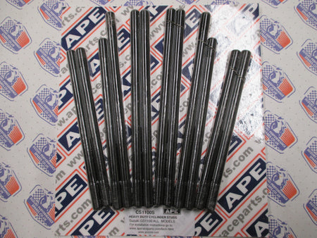 set of APE chrome moly replacement heavy duty cylinder studs.ensures consistant torque figures on performance engines.they do not stretch over time,making sure the head to barrel seal is always good.