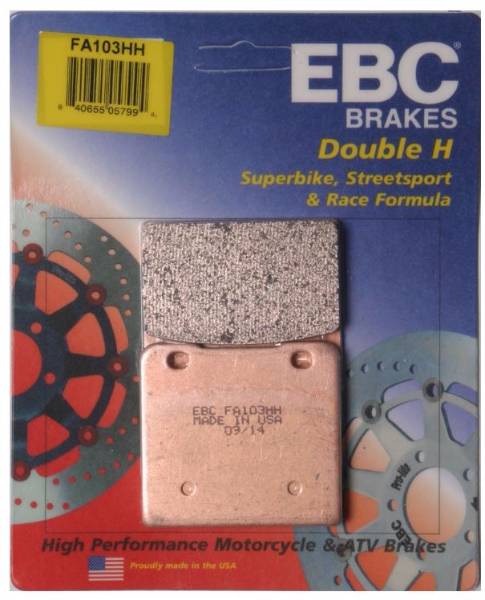 EBC Brakes Double-H Sintered Brake Pads To Fit Front Kawasaki ZRX 1200R 01-08 Fast street and superbike pad Ultra high brake effect and lifetime Perfect braking wet or dryThe EBC flagship sintered streetsport pad that delivers highest braking power, stability and long life. There are few pads on the market to meet or beat the performance of Double-H pads. Made in the EBC state-of-the-art sintering plant in Ohio, USA, these pads stop fast - wet or dry - and last for thousands of miles.Note: Price per pair FA103HH