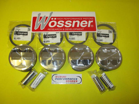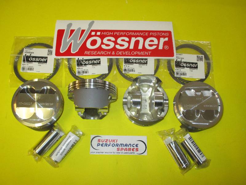 Wossner Forged Race Quality Street piston kit for the GSXR1100, GSF1200 bandit. The kit comes with 4 forged pistons, wossner piston rings, circlips and top quality tapered wrist pins.Made in germany.