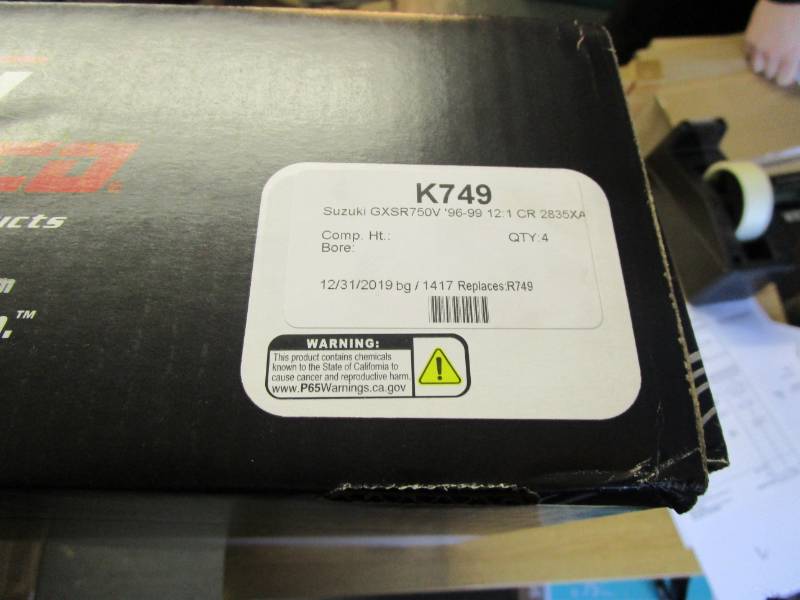 Wiseco Hi Comp Piston Kit. std bore. GSXR750 Stad 96-99 modls. complete with MLS Head Gasket.
