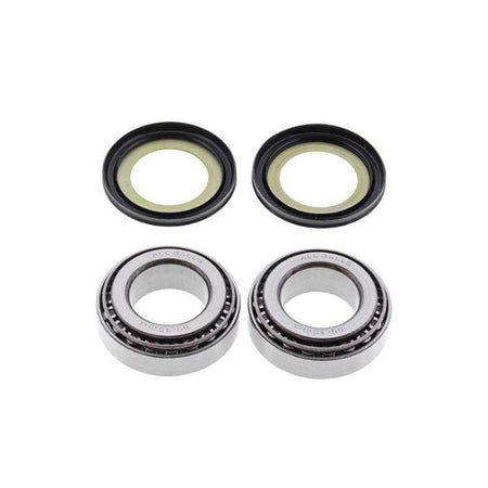 Race quality USA sourced Steering Head Bearing Kit. Taper bearings and seals. Replace those tired bearings and rejuvenate your handling and steering. MODEL FITMENT: BMW HP4 13-14, R Nine T 13-17, R Nine T Scrambler 15-17, S1000RR 10-14, S1000RR/R 14-17, Kawasaki KLV1000 (Euro) 04-05, KTM RC 8 1190 09-15, Suzuki DL1000 V-Strom 02-16, DL650 04-11, DL650 ABS 07-17, DL650 XT ABS 17, GSR600 (Euro) 06-07, GSX1300 B-King 08-09, GSX-R1000 01-17, GSX-R1000 ABS 17, GSXR1300R Hayabusa 99-17, GSX-R600 97-17, GSXR750 96-17, GSX-S1000 16-17, RGV250 (Euro) 97, SV1000S 03-07, SV650 03-09, SV650 ABS 03-09, SV650 S 06-09, TL1000R 98-03, TL1000S 97-01, TM EN 125 98-01, EN 250 98-01, EN 300 98-01, MX 125 98-01, MX 250 98-01, MX 300 98-01, Triumph Bonneville Bobber 17, Bonneville T100 17, Bonneville T120 17, Daytona 675 06-16, Daytona 675 R 13-16, Speed Triple 11-15, Speed Triple R 10 Spoke 15, Speed Triple R 16, Speed Triple R 5 Spoke 15, Speed Triple S 16, Sprint ST 05-13, Street Cup 17, Street Scrambler 17, Street Triple 08-16, Street Twin 16-17, Thruxton 1200 16, Thruxton 1200 R 16, Tiger 07-12, Tiger 800 11-14, Tiger 800 XC 11-16, Tiger 800 XCA 15-16, Tiger 800 XCX 15-16, Tiger 800 XR 15-16, Tiger 800 XRT 15-16, Tiger 800 XRX 15-16, Tiger Explorer 1200 12-15, Tiger Explorer 1200 XC 12-16, Tiger Explorer 1200 XCA 16, Tiger Explorer 1200 XCX 16, Tiger Explorer 1200 XR 16, Tiger Explorer 1200 XRT 16, Tiger Explorer 1200 XRX 16, Trophy 1215 13-16, Trophy 1215 SE 13-16, Yamaha CP250X MORPHOUS 06-08, FJR1300 03-16, FJR1300ES 14-18, TDM900 (Euro) 02-06, YZF-R1 50th 06, YZF-R1 98-06, YZF-R1 Limited edition 06, YZF-R6 99-05, YZF-R6S 06-09