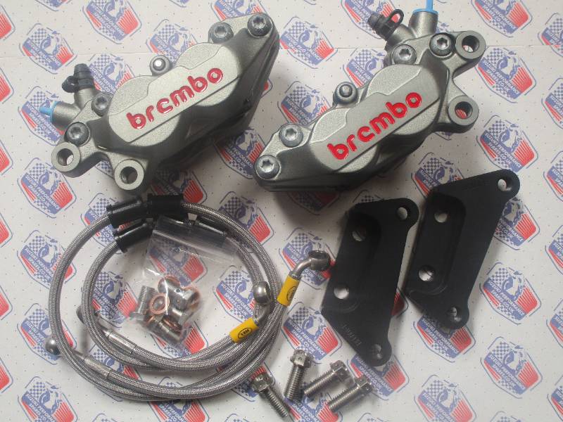 Product Description Brembo upgrade front brake caliper conversion Brembo forged P4 30/34 calipers HEL Performance braided steel brake hose with stainless fittings and copper washers Significant performance increase over standard Direct replacement, no modification necessary For use with standard diameter brake disc Supplied with brake pads fitted