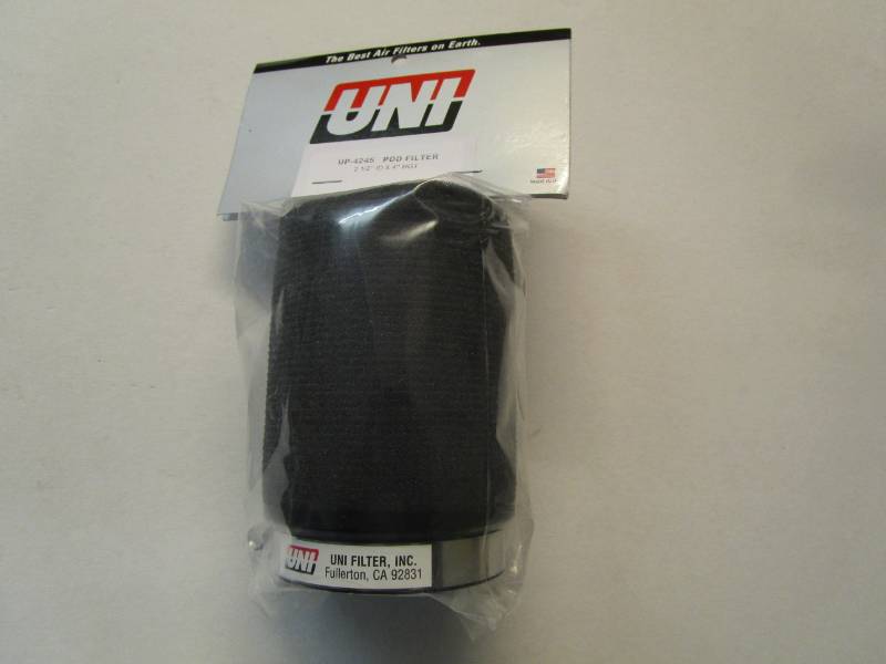 Unifilter ,USA made individual Pod Type Airfilter. UP4245 2.5" 62mm ID 4" long. They include an unner Spring to ensure the filter element does not collapse.They will clamp up approx 5mm to fit small carb bellmouths.